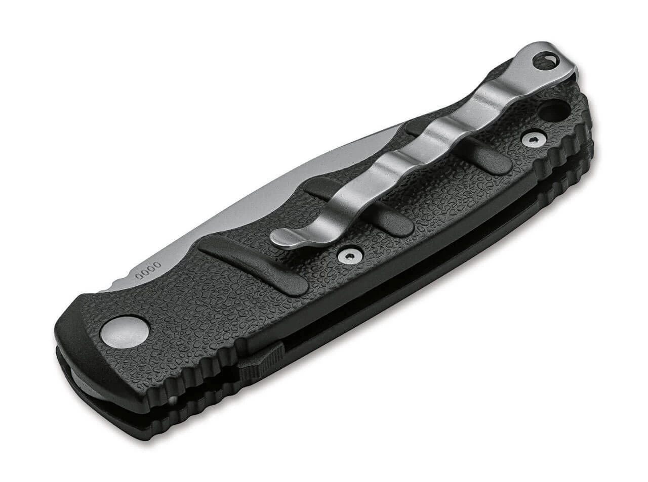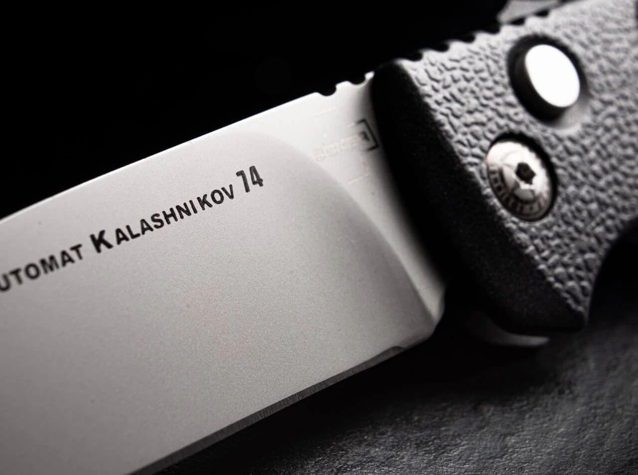 Das Böker Plus AKS-74 aus der Kalashnikov-Serie gehört mit Sicherheit zu den beliebtesten Modellen unseres Sortiments und wurde in den vergangenen Jahren in zahlreichen verschiedenen Varianten produziert. Der schwarze Griff aus Aluminium erinnert stark an das Bajonett des berühmten Sturmgewehrs, die erhabenen Strukturbahnen bieten zudem in jeder Situation sicheren Halt. Die gestrahlte Klinge wird aus rostfreiem D2 gefertigt und kann zusätzlich zum Druckknopf per Schiebesicherung gesichert werden. Mit Fangriemenöse und praktischem Clip (Tip-Up/r).