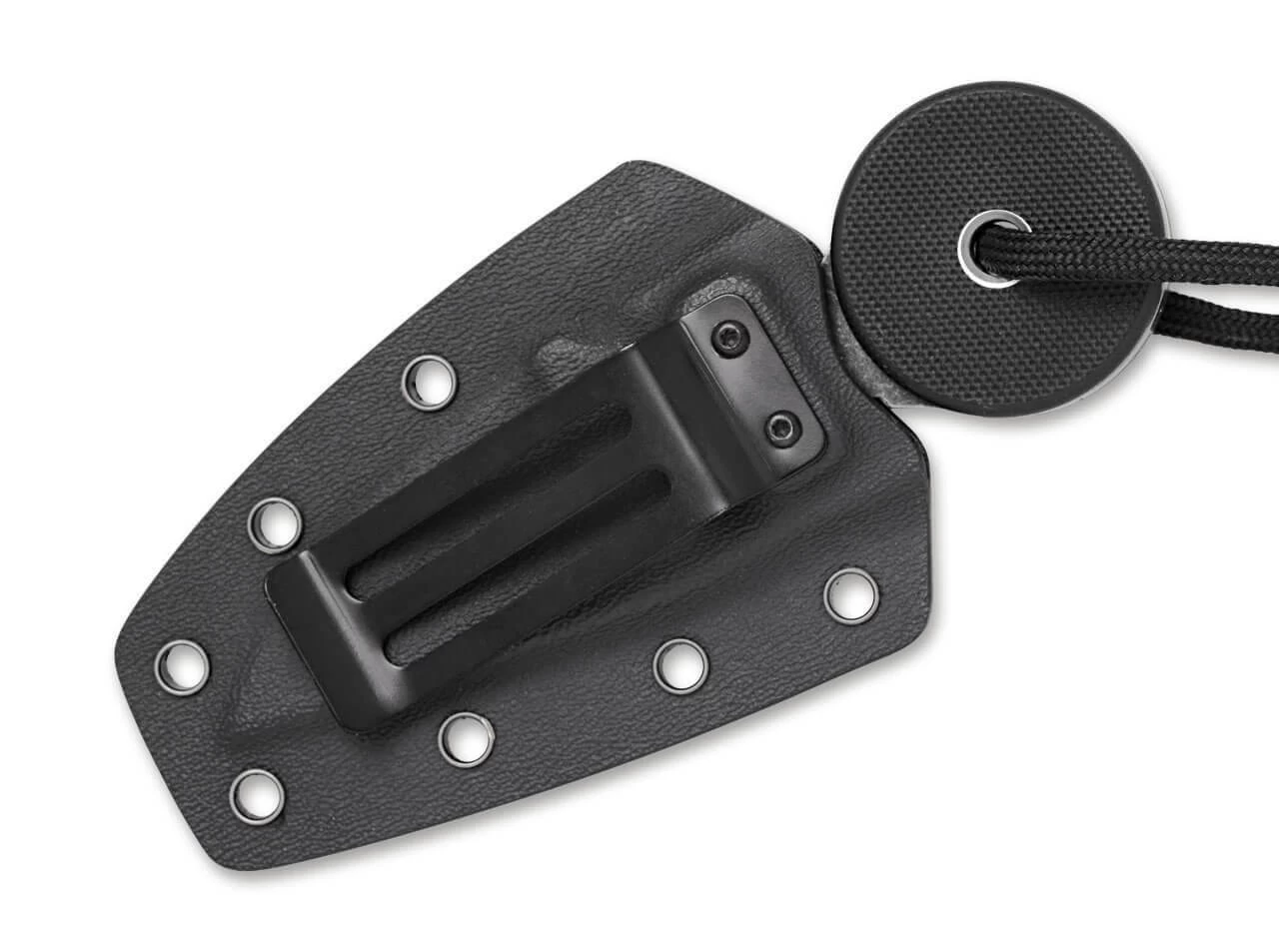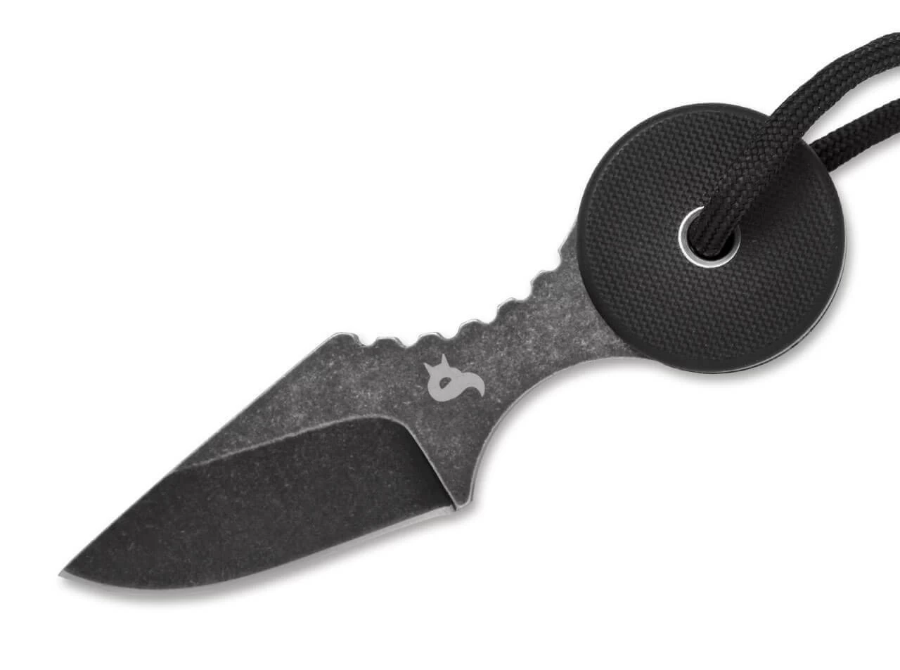 Das kompakte Faustmesser ist komplett in Schwarz gehalten und besteht aus 440C. Das runde Griffende ist mit G10 augestattet und verspricht sicheren Halt. Lieferung mit passgenauer Kydexscheide.