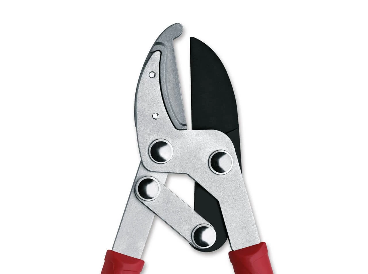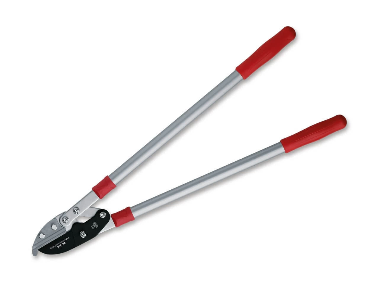 Die Due Cigni Astschere schneidet hartes und trockenes Holz bis zu einem Durchmesser von 4cm. Dank der Schneide aus SK-5 Kohlenstoffstahl wird das Schnittbild sauber ohne das übrige Astwerk zu verletzen. Der clevere Hebelmechanismus verringert den Kraftaufwand und sorgt für ein schonendes Arbeiten. Die leichten Aluminium-Hebelarme mit rutschfesten Griffen garantieren jederzeit sicheren Halt und volle Kontrolle selbst bei schwierigen Arbeiten über Kopf.