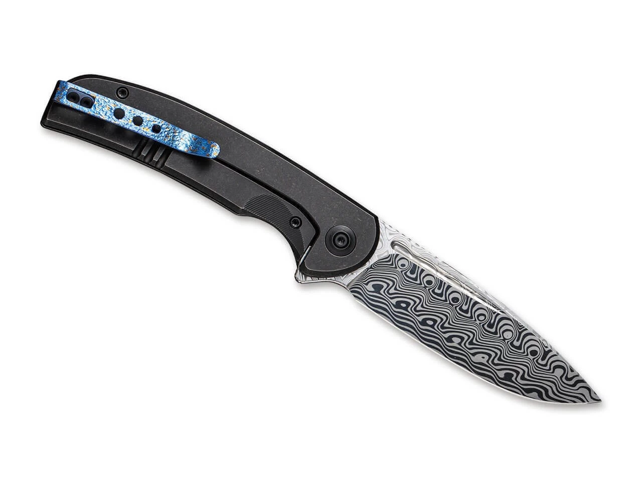Das funkelnde Licht am Horizont des WE Knife Ozeans ist eindeutig das elegante Beacon. Seine Strahlkraft verdankt es der edlen Damastklinge und dem geradlinigen Titangriff. Nagelhau und Framelock geben dem Messer auch bei rauem Seegang der täglichen Schneidarbeiten eine sichere Orientlierung. Der Clip (Tip-up/r) rundet die Ausstattung perfekt ab und erzeugt garantiert ein Leuchtfeuer in den Augen.