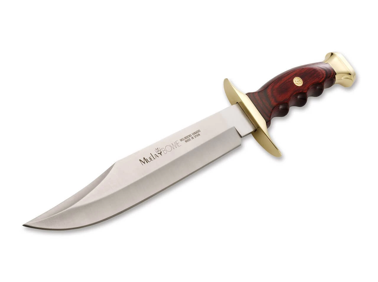 Der Name Muela steht für temperamentvolle Jagdmesser, traditionelle Materialien und bedingungslose Qualität. Das BW-22 setzt diese Ära fort und kommt mit einer wuchtigen Bowie-Klinge aus X50CrMoV15 und einem handschmeichelnden Griff aus Korallenholz. Der Knauf und das ausgeprägte Parierelement sind aus Messing gefertigt und runden die klassische Optik des Jagdmessers ab. Lieferung mit hochwertiger Lederscheide.