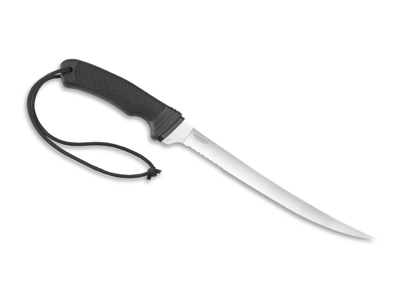 Durch den aufwändigen Klingenschliff und die flexible Klinge aus rostfreiem 420J2-Stahl gleitet die Klinge durch den Fisch wie durch Butter. Zum optimalen Schneiden ist eine Seite der Klinge hohlgeschliffen. Der partielle Wellenschliff übernimmt die groben Arbeiten und durch den weichen Kraton-Griff liegt das Messer selbst bei kalten und nassen Fingern sicher in der Hand. Inkl. einer funktionalen und stabilen Köcherscheide aus Kunststoff.