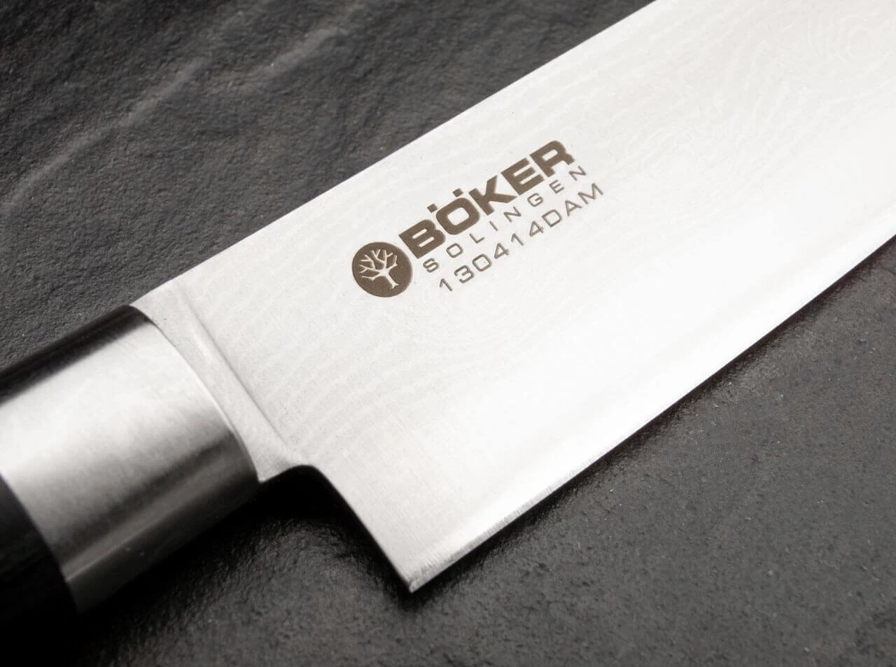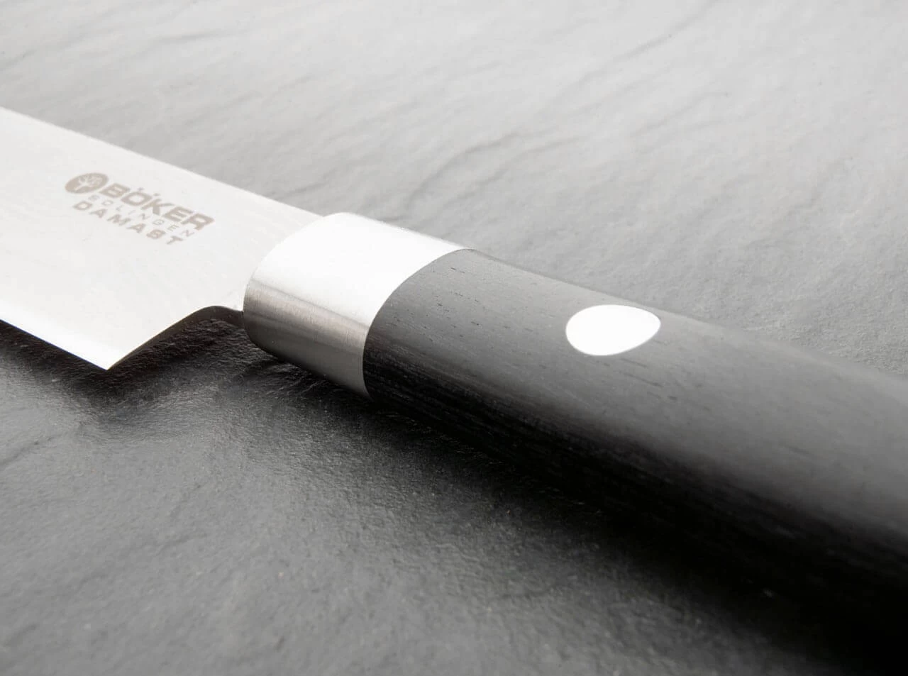 Das Geheimnis der ungewöhnlichen Schärfe liegt im Material und dessen Bearbeitung. Die Klinge besteht aus 37 Lagen Damaststahl. Der rostträge Premium-Klingenstahl VG-10 der mittleren Schneidlage wird in Japan hergestellt und zeichnet sich durch einen hohen Härtegrad, Zähigkeit und eine homogene kristalline Struktur aus. Im direkten Vergleich der Schneidleistung mit einem Produkt eines etablierten Solinger Küchenmesserherstellers gemäß der DIN EN ISO 8442-5 schneiden die Messer nicht nur sprichwörtlich besser ab. Die Schneidleistung liegt im repräsentativen DIN-Test mehr als 68 % über der des Wettbewerbsproduktes. Zusätzlich überzeugen die Serie Böker Damast Black durch eine höhere Anfangsschärfe. Ständiges Nachschärfen gehört damit der Vergangenheit an.