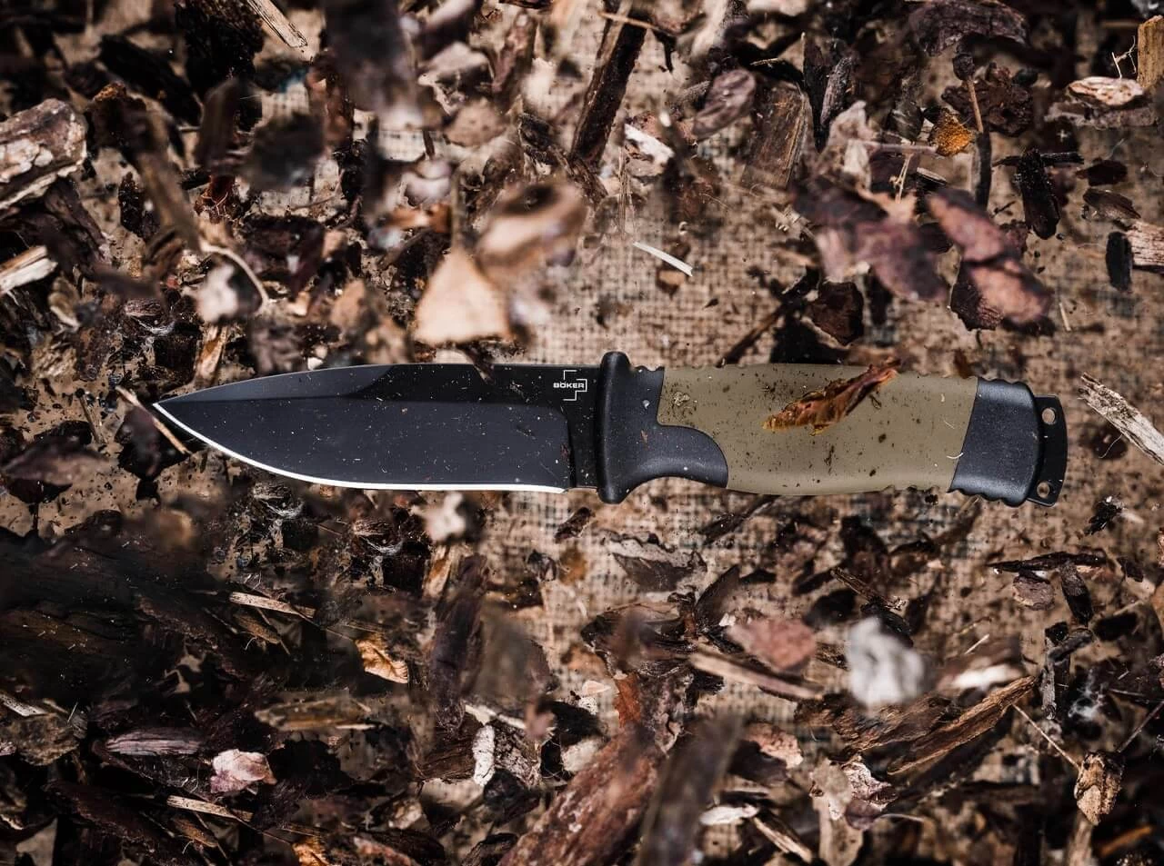 Getrimmt auf Outdoor – gemacht fürs Abenteuer. Das Böker Plus Desertman enthält die kompromisslose DNA des erfolgreichen Outdoorsman und überzeugt als ausgewachsenes Fahrtenmesser bei jedem Ausflug in die Natur. Der durchgehende Erl und die breite Klinge gewährleisten maximale Stabilität, während das hervorstehende Griffende als Hammerfläche ausgeformt wertvolle Dienste leistet. Der direkt aufgespritzte GFK-Griff besitzt eine große Gripzone aus sandbraunem TPR, welches auch bei Nässe oder Kälte ein sehr sicheres angenehmes Handling garantiert. Die Spearpoint-Klinge besteht aus 12C27 und wird zur Steigerung des Korrosionsschutzes mit einer Titanbeschichtung versehen. Lieferung mit passgenauer Kunststoffscheide.