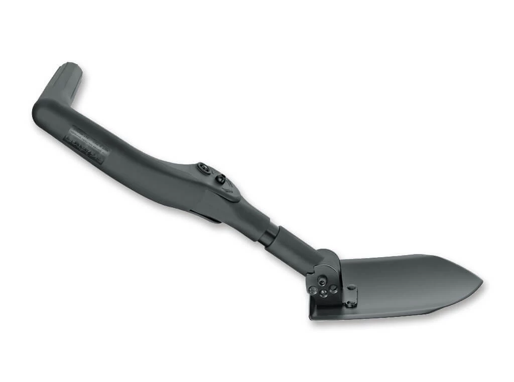 Dieser besonders belastbare Klappspaten besticht mit seiner außergewöhnlichen Konzeption. Die ausgeklügelte Technik und die Verwendung von hochwertigen Materialien machen den Unterschied. Der quer zum glasfaserverstärktem Schaft stehende T-Griff ermöglicht äußerst effizientes Arbeiten auch bei extrem harten Untergründen. Das Blatt aus gehärtetem 420er Edelstahl sorgt für eine hohe Lebensdauer des Folding Spade. Um mehr als nur „buddeln“ zu können, haben Sie die Möglichkeit, das Blatt des Spatens in 90° (Hacke), 135° (Schaufel) oder 180° (Spaten) zu arretieren. So ist ein langer und ermüdungsfreier Einsatz bei unterschiedlichen Arbeiten gewährleistet. Inklusiver Corduratasche.