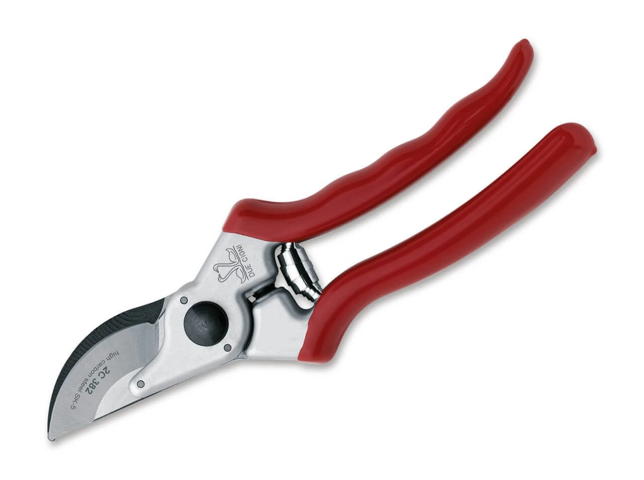 Gartenfreunde und Winzer aufgepasst! Die Due Cigni Gartenschere eignet sich ideal zum präzisen Schneiden von Rosen, Reben und kleineren Ästen. Dank der Schneide aus SK-5 Kohlenstoffstahl werden Schnitte sauber durchgeführt, ohne das übrige Geäst zu verletzen. Der ergonomische Aluminiumgriff mit roter Kunststoffbeschichtung liegt jederzeit sicher in der Hand, während der Stoßdämpfer für ein ermüdungsfreies Arbeiten sorgt.