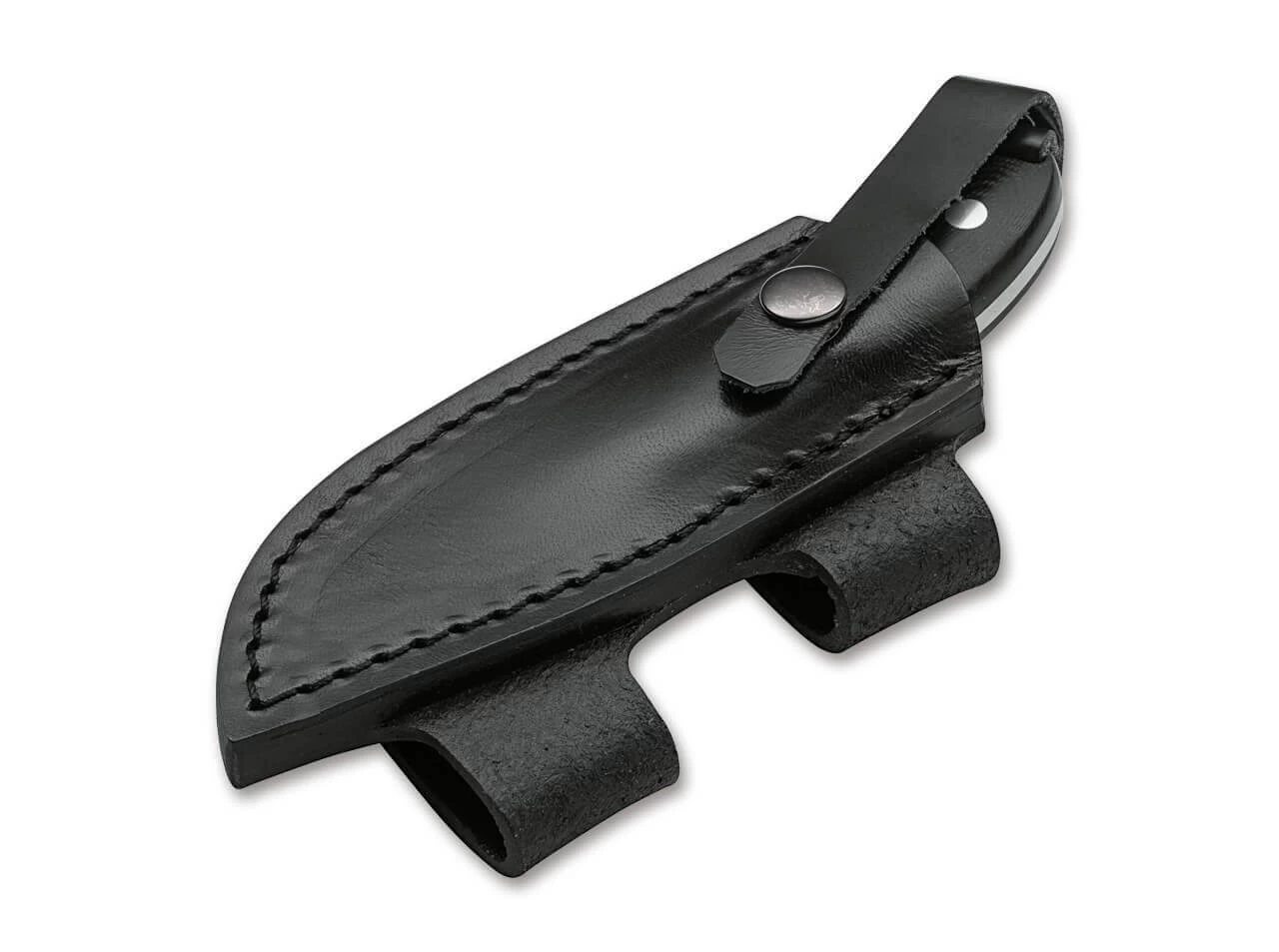 Das von Greg Dash entworfene Böker Plus J-Bite ist ein überaus kompaktes EDC-Messer, das horizontal am Gürtel getragen wird und sich auch auf der Jagd oder in der Wildnis bestens bewährt. Der amerikanische Messermacher aus New York ist seit seiner frühen Jugend von Messern begeistert und stets auf der Suche nach praktischen Innovationen und Verbesserungen. Das handliche J-Bite ist mit einer satinierten Clip-Point-Klinge aus 440C ausgestattet, die mit einer dekorativen Fehlschärfe versehen ist. Der Griff aus schwarzem G10 liegt trotz seiner geringen Größe angenehm in der Hand. Um das Messer in der horizontalen Trageposition zu fixieren, entwickelte der Designer den sogenannten J-Lock. Ein Fangriemen am Griffende des Messers wird an der schwarzen Lederscheide befestigt und verhindert so ein ungewolltes Herausrutschen des Messers.