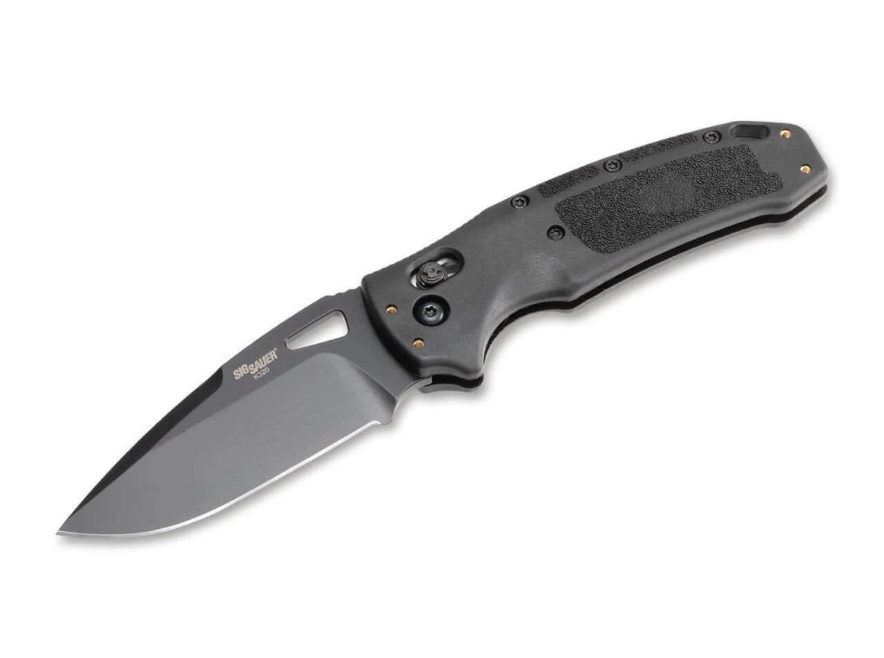 Das von Hogue in Lizenz für SIG Sauer gefertigte K320 Nitron vereint eidgenössische Präzision mit amerikanischem Militär-Knowhow. Die Droppoint-Klinge des taktischen Taschenmessers besteht aus pulvermetallurgischem CPM-S-30V und ist mit einer schwarzen PVD-Beschichtung versehen. Das Messer öffnet leichtgängig per Daumenöffnung, während der texturierte Griff aus Polymer sicher in der Hand liegt. Der patentierte ABLE Lock sichert die Klinge auch bei schwierigen Arbeiten zuverlässig. Mit Fangriemenöse und vierfach umsetzbarem Clip.