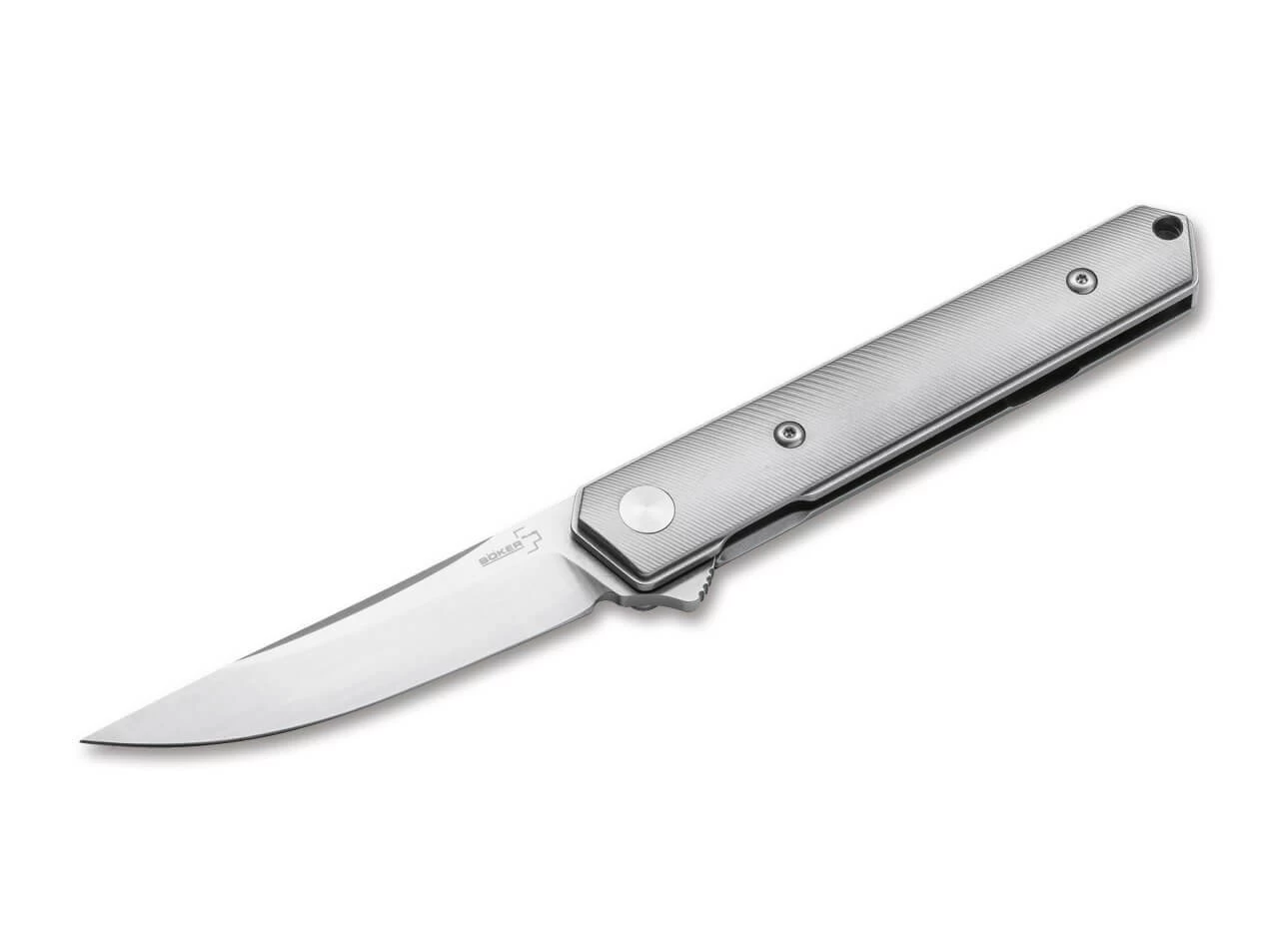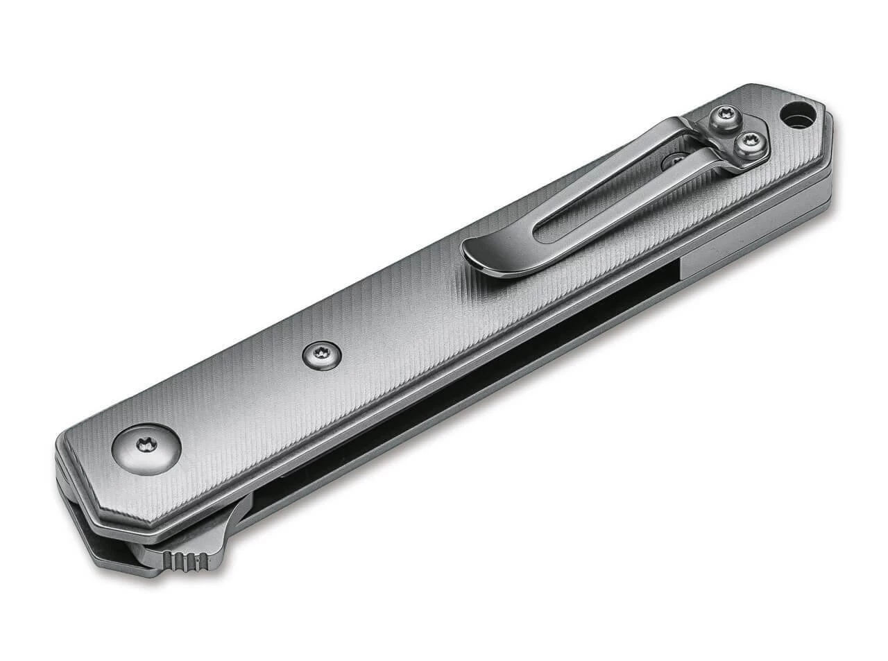 Der Flipper sorgt für eine intuitive Bedienung und zusätzliche Sicherheit, während der Linerlock die schmale satinierte Klinge aus D2 sicher arretiert. Unterstrichen wird der exklusive Anspruch dieser Version durch die Beschalung aus fein strukturiertem Titan, die dem Messer eine ganz besondere Anmutung verleiht.