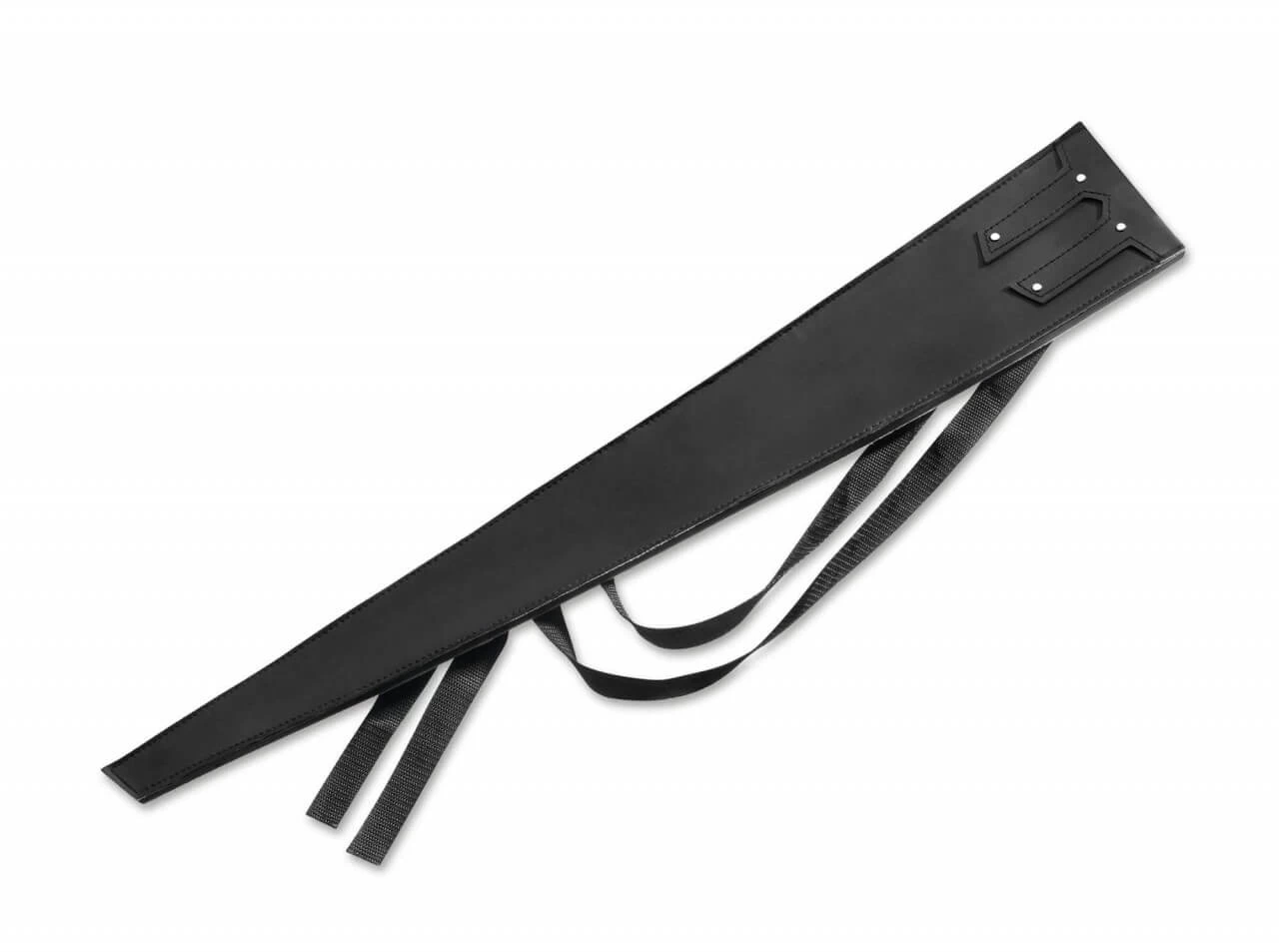 Ein wirklich beeindruckendes Schwert! Durch die mächtige Klinge von 74 cm mit einer maximalen Breite von 9 cm kann man von einem wahrlich imposanten Deko-Schwert sprechen. Die Klinge ist aus Kohlenstoffstahl gefertigt. Die Ausführung des Schwertes entstammt den japanischen Mangas, in denen das Ichigo auch seine Rolle spielt. Das Schwert ist dekorativ abgezogen, was den aufwändigen Charakter unterstreicht. Die Klinge ist geschwärzt und zur Schneide hin poliert. Der Holzgriff ist mit weißem Tuch umwickelt, und entspricht so perfekt seinem Vorbild. Ausgeliefert wird dieses Schwert mit einer auf dem Rücken zu tragenden schwarzen Scheide.