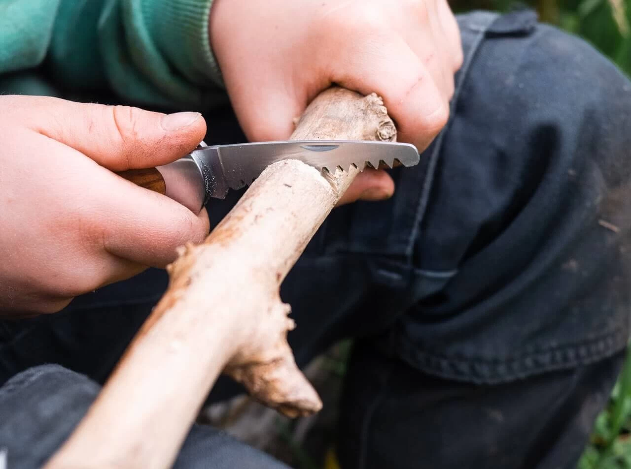 Das Magnum Classic Hunter Slim Kids überzeugt als sicheres Kindermesser mit einer satinierten Clippoint-Klinge aus 440A und vervollständigt die Ausrüstung jedes jungen Pfadfinders und jeder Nachwuchs-Abenteurerin. Das explizit für Kinderhände konzipierte Taschenmesser ist deutlich kleiner als das ursprüngliche Magnum Classic Hunter Slim und verfügt aus Sicherheitsgründen über eine abgerundete Spitze. Sowohl die Hauptklinge als auch die vielseitige Säge werden per Nagelhau geöffnet und einzeln von einem stabilen Backlock arretiert, sodass ein unbeabsichtigtes Einklappen verhindert wird. Die konturierten Griffschalen werden aus mediterranem Olivenholz gefertigt und liegen angenehm in der Hand. Mit praktischer Fangriemenöse.