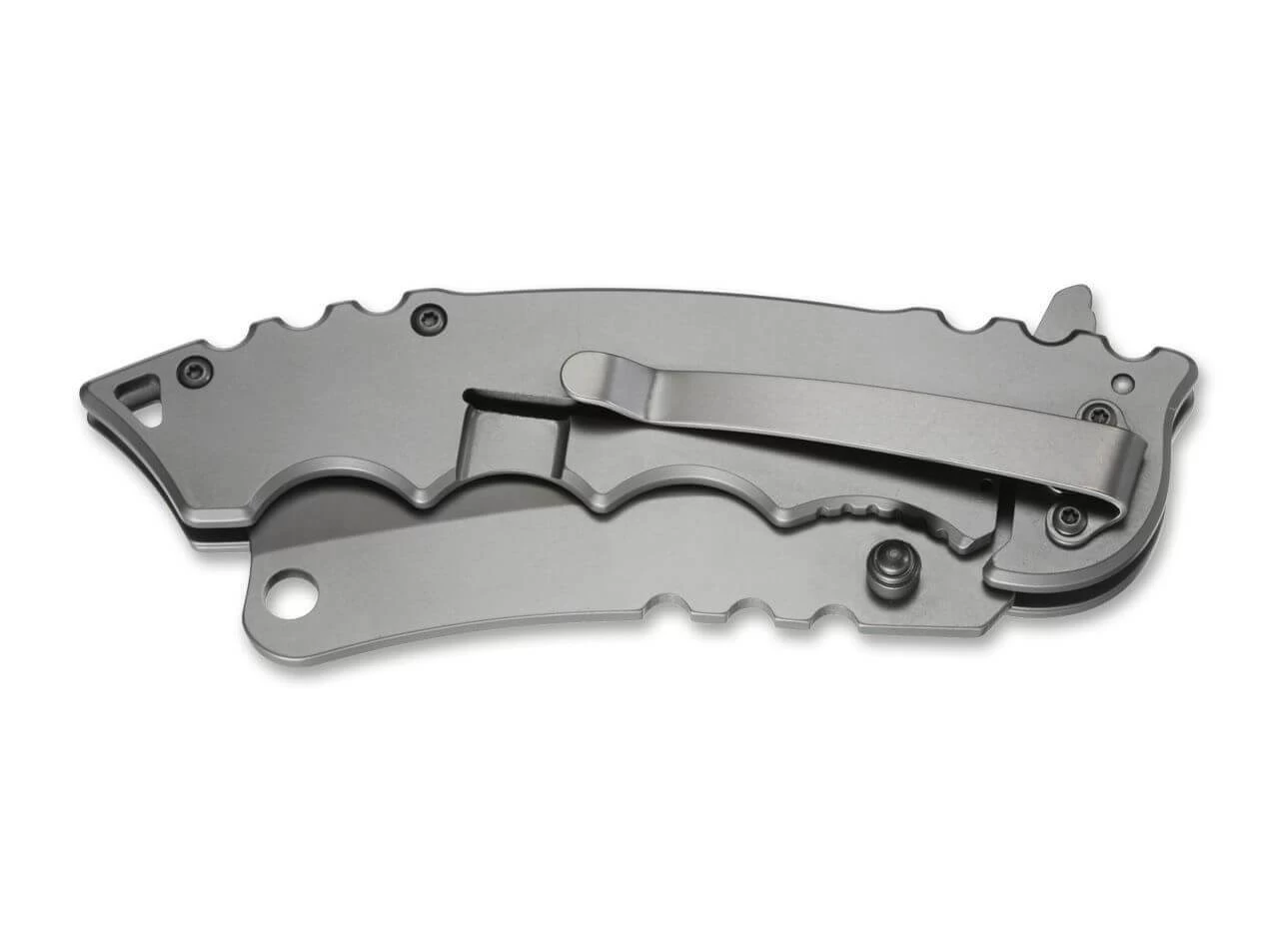 Die außergewöhnliche Klinge des Magnum Mortem wird aus 440A gefertigt und mittels des Flippers oder des beidseitigen Daumenpins geöffnet. Während die hintere Schale den Framelock trägt, ist die Vorderschale des Edelstahlgriffs mit einem stilisiertem Totenkopf versehen. Die ausgeprägten Riffelungen im Bereich der Daumenauflage garantieren zudem kontrolliertes Schneiden. Mit Clip (Tip-Down) und Fangriemenöse.