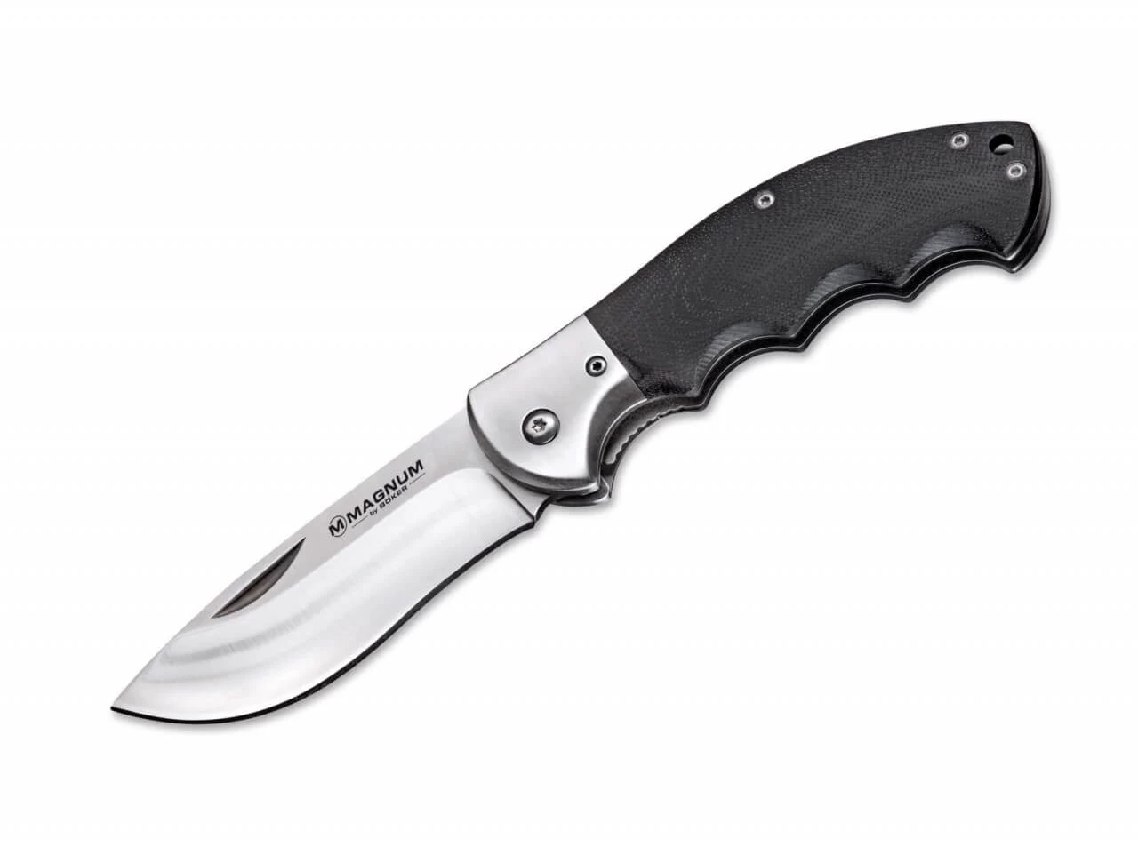 Ein Skinner ist auf einer Jagd ein unverzichtbares Werkzeug. Die bauchige Klinge mit der fein ausgeschliffenen Schneide aus 440A–Stahl ist fein satiniert. Die Fingermulden geben dem Messer ein hervorragendes Handling. Clip und Fangriemenöse steigern den Nutzwert dieses klappbaren Skinners. Die Beschläge sind aus überaus stabilem Edelstahl gefertigt, und die Griffschalen bestehen aus widerstandsfähigem G10.