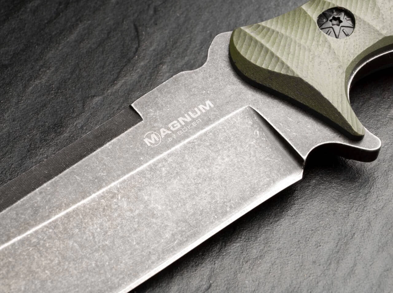 Das Magnum Persian Fixed ist ein ausgewachsenes Outdoormesser mit persischen Wurzeln. Die Klinge aus 440A ist in Form einer modifizierten Droppointklinge gestaltet. Die Griffgestaltung weist einen orientalischen Einfluss auf, der häufig bei persischen Messern zu finden ist. Die ausgeprägte Zeigefingermulde sowie der nach unten gewölbte Griff sind Indikatoren für diesen Ursprung. Die Fulltang-Bauweise mündet in einem spitzzulaufenden Skullcrusher. Die grünen G10-Schalen sind angenehm strukturiert. Mit Kydexscheide, Gürtelhalterung und Fangriemenöse.