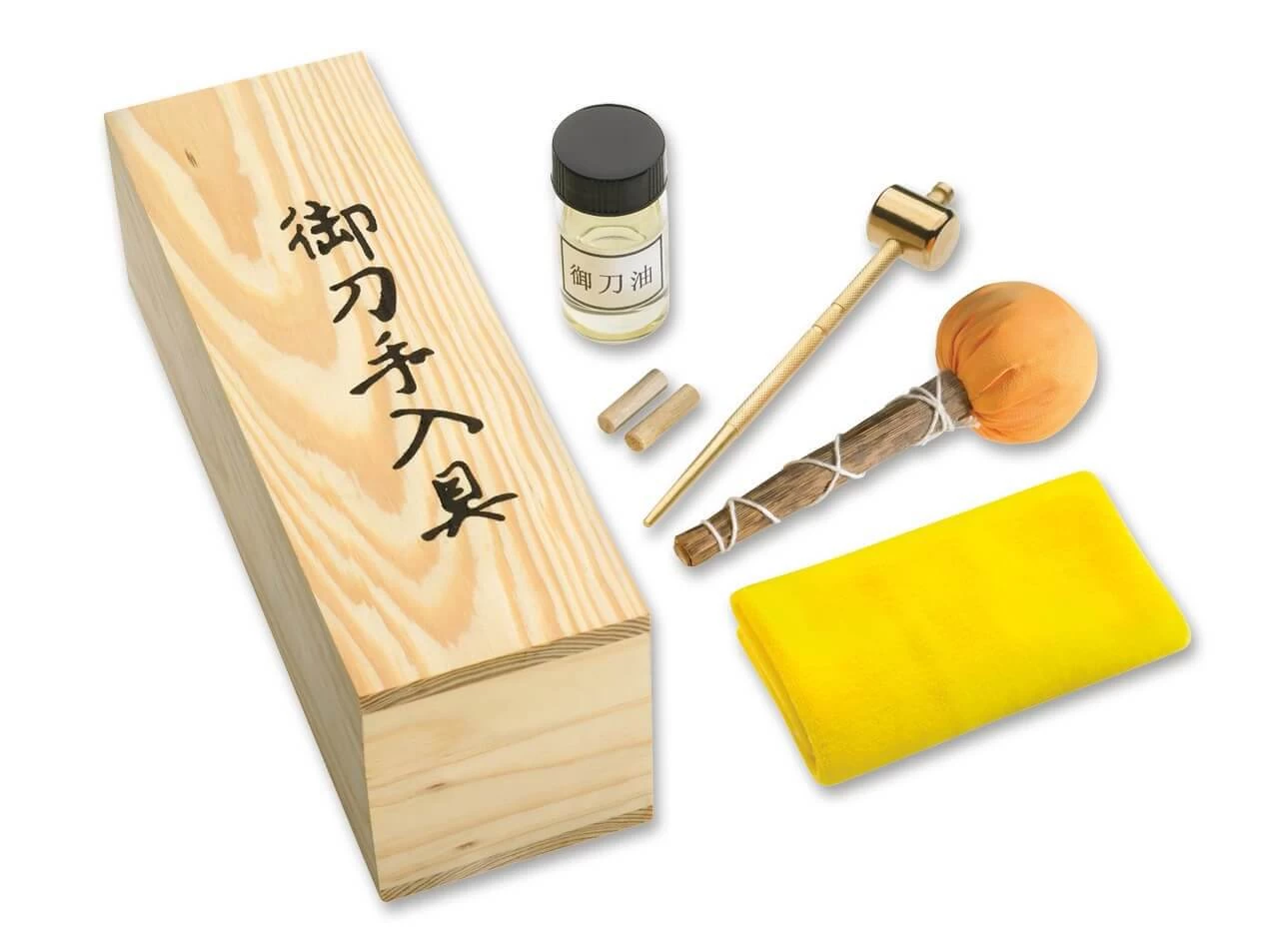 Ein echtes Premium-Schwert. Der traditionelle Griff, die weiße, rochenhautartige Unterlage, die Menukis und die zwei Mekugis, die die Klinge im Griff fixieren, sind nur einige der starken Eigenschaften dieses meisterlichen Schwertes. Die handgeschmiedete Klinge aus 1045er Kohlenstoffstahl ist scharf geschliffen und wird von der dekorativ gestalteten Tsuba vom Griff getrennt. Die Tsuba stellt zwei kämpfende Samurai dar. Das leicht antike Finish lässt das Schwert noch authentischer wirken. Auslieferung inkl. Schwerter-Pflegeset und schön lackierter Holzscheide.