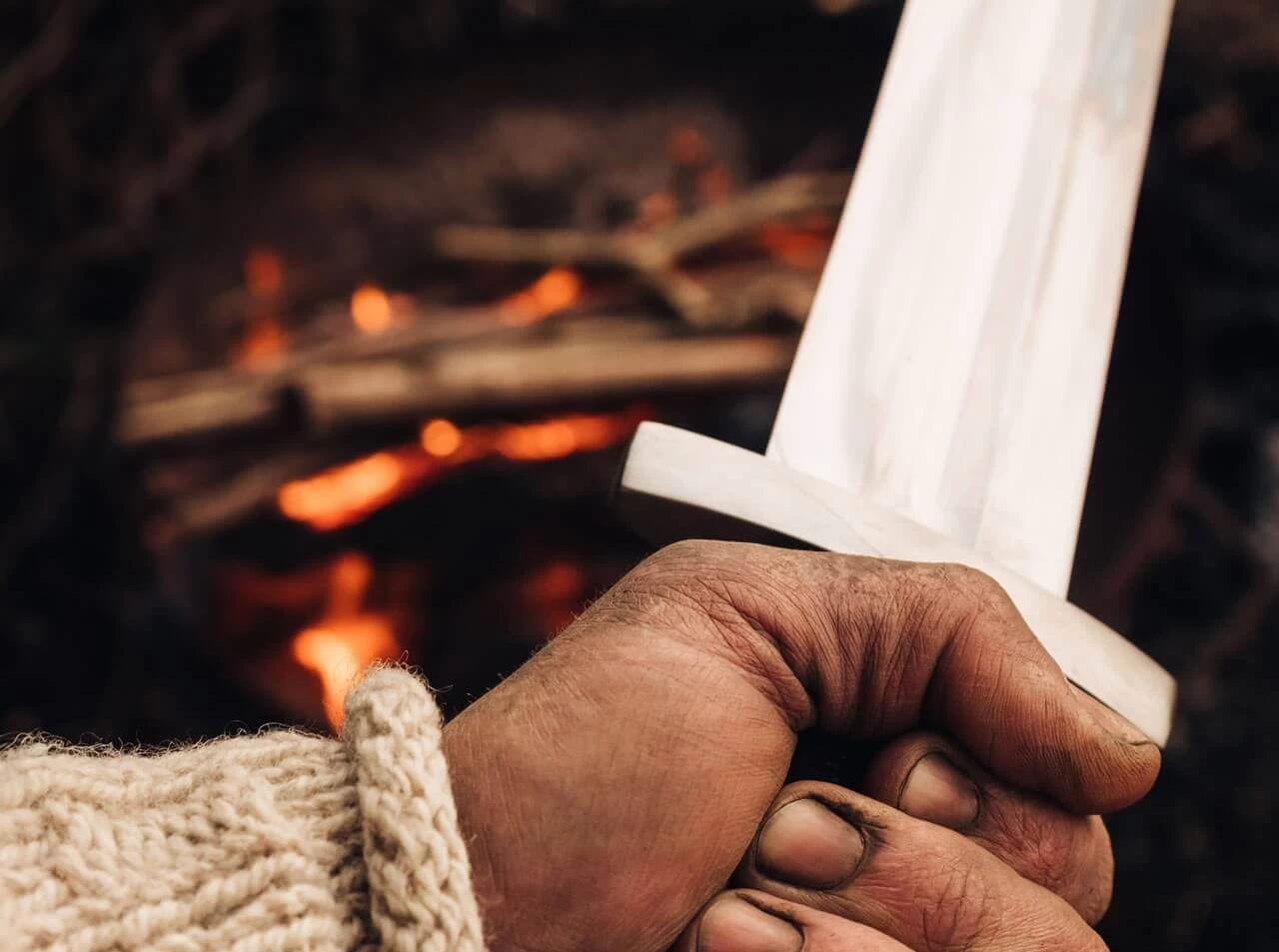 Die gehärtete und abgezogene Klinge dieses einsatztauglichen Schwertes ist flexibel wie sein historisches Vorbild und wird mit viel Liebe zum Detail mit hochwertigem Griff und Edelstahlbeschlägen versehen, so dass das Schwert durch seine Ausgewogenheit und die äußerst edle Anmutung begeistert. Die Authentizität dieser edlen Blankwaffe fasziniert auf Anhieb, und die hochwertige Verarbeitung eines jeden Exemplares macht das Mittelalter wieder lebendig. Ausgeliefert wird das Viking’s Sword mit sauber angepassten authentischen Scheide mit Edelstahlbeschlag. Man muss ein Schwert nicht unbedingt aus einem Stein ziehen, um sich wie ein König zu fühlen! Dieser schöne Nachbau eines mittelalterlichen Schwertes basiert auf authentischen Fundstücken aus dem frühen Mittelalter. Die angeschärfte Klinge aus 1060er Kohlenstoffstahl trägt eine lange, breite Hohlkehle, die dem Schwert seine Authentizität verleiht. Der mit Kordel umwickelte Griff und die Edelstahlbeschläge geben dem Schwert seine ausgezeichnete Balance.