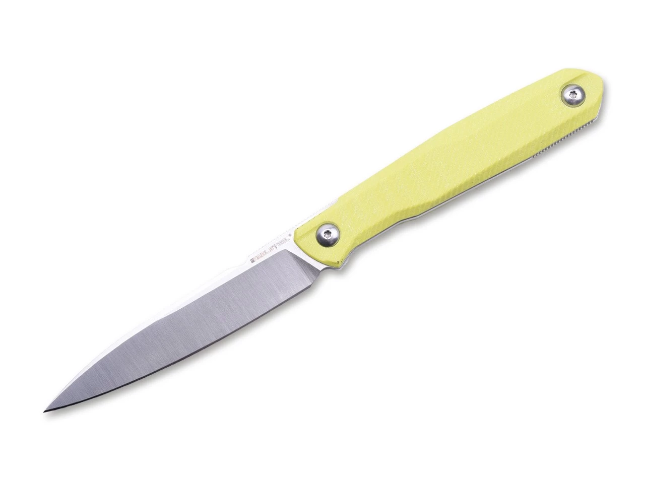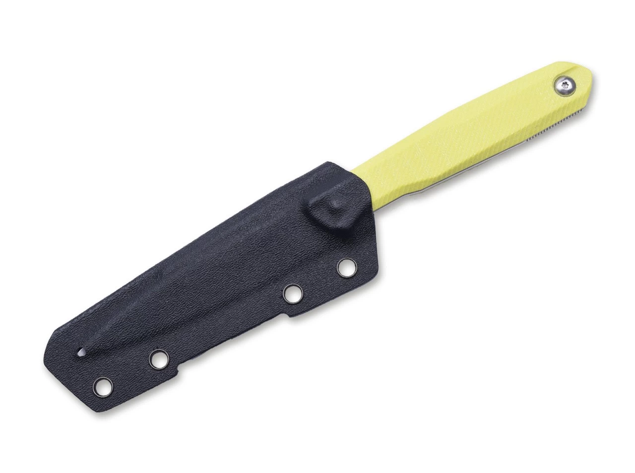 Das Real Steel Metamorph Fixed ist die feststehende Variante des beliebten Gentleman-Folders von Ostap Hel. Das schlanke Messer begeistert ebenfalls mit einer schmalen Klinge aus 14C28N, die eine falsche Schneide oben auf der Klinge antäuscht. Die Griffschalen werden aus strukturiertem G10 gefertigt. Mit schwarzer Kydexscheide und Fangriemenöse.