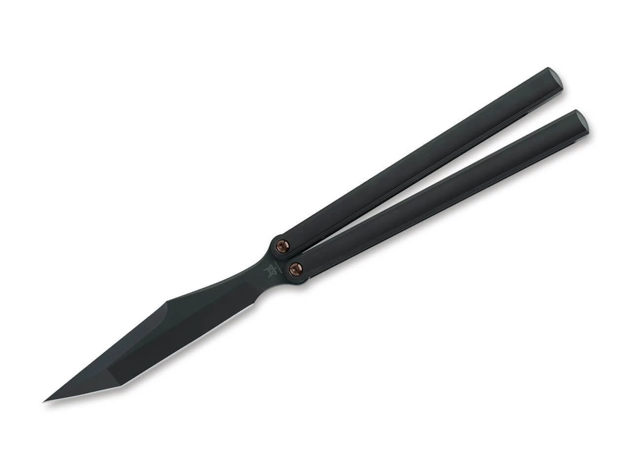 Das Fox PHI greift die Wurzeln der philippinischen Balisong Messer auf und erhält durch Designer Vincenzo Fiore eine moderne Interpretation. Typisch für diese auch „Butterfly“ genannten Messer sind die um 180° schwenkbaren Griffhälften, die beim Fox PHI aus schwarzem Titan bestehen im Sinne einer ausgewogene Gewichtsverteilung nicht über die üblichen kreisförmigen Aussparungen verfügen. Für ein aufgeräumtes Bild sorgt zudem das Fehlen des sonst üblichen Sicherungsstifts am Griffende, wodurch das Messer elegant schlank ausfällt. Bei der Klinge setzt das PHI auf den bewährten M390 Klingenstahl, der dank hoher Verschleißfestigkeit und Zähigkeit äußerste Zuverlässigkeit beim Schneiden verspricht und eine taktische Note durch das PVD Finish erhält.