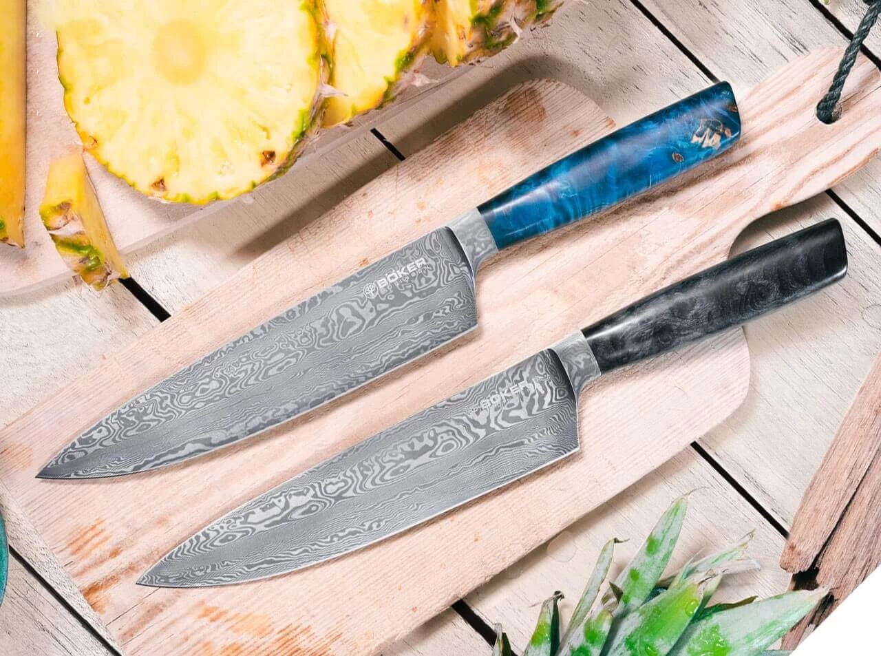 Das Chefmesser, oder auch Kochmesser, zählt zu den wichtigsten Messern in der Küche und gehört zur Grundausstattung. Es hat eine etwas breitere und längere Klinge als das Allzweckmesser. Die schlanke Spitze eignet sich ausgezeichnet dazu Zwiebeln oder kleines Gemüse zu schneiden. Dank seine Länge, kann man es aber auch hervorragend als Fleischmesser benutzen. Auch große Gemüsesorten lassen sich problemlos damit verarbeiten.