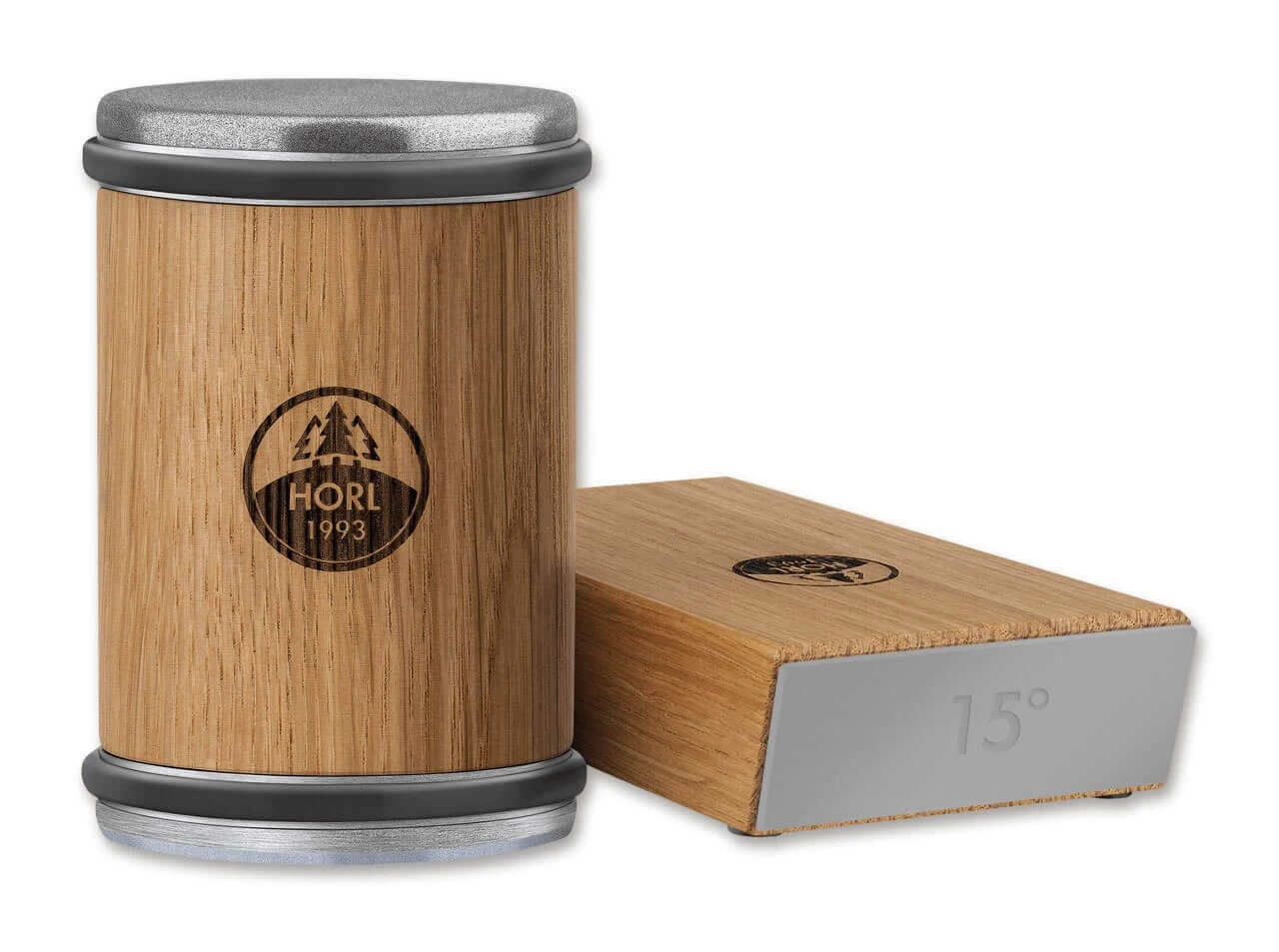 Das Runde gehört ans Eckige – der innovative Rollschleifer HORL 2 macht das Schärfen von Messern so einfach wie nie zuvor. Das Konzept des manuellen Messerschärfers ist hierbei so einfach wie genial. An den Enden der Rollwalze befinden sich jeweils eine Diamant Schleifscheibe für den Hauptschliff und eine Keramik Abziehscheibe zum Verfeinern des Schliffbildes. Gehalten wird das Messer an der mitgelieferten Magnetschleiflehre im Winkel von wahlweise 15° oder 20°. Die Gummifüße verhindern ein Verrutschen der Führung, so dass es beim Schärfen ab jetzt immer rund läuft. Dank der kugelgelagerten Walze und den breiten Gummiringen erhält jedes Messer beim Entlangrollen des HORL 2 einen gleichmäßigen Schliff. Walzkörper und Führungslehre sind aus edlem Eichenholz gefertigt. Die Schleifscheiben können beim HORL 2 gewechselt werden. Made in Germany und garantiert ein Kandidat für die HORL of Fame.