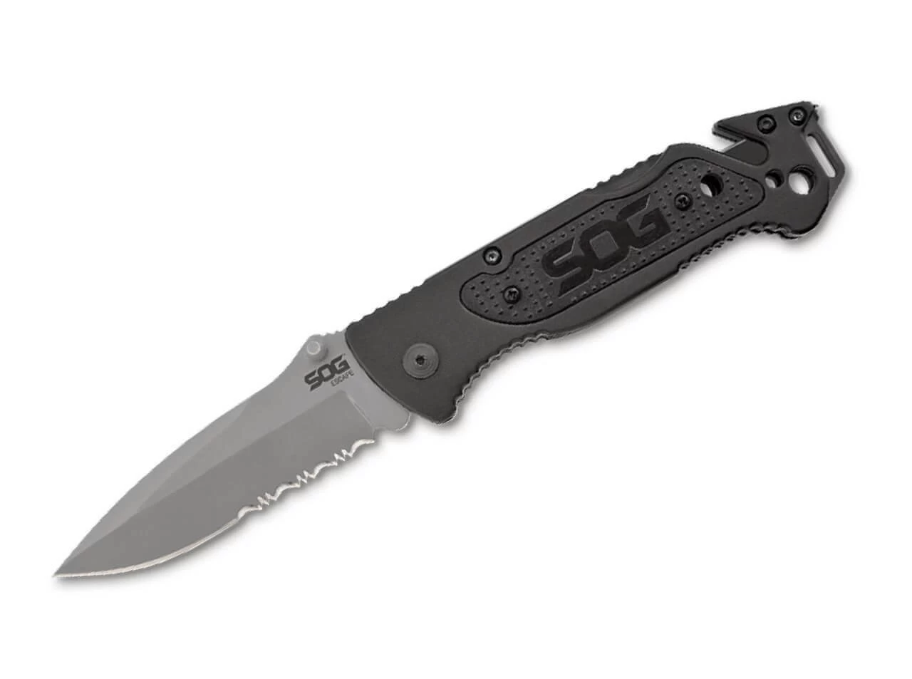 Das SOG Escape ist ein robustes Rettungsmesser mit der perfekten Größe für den alltäglichen Gebrauch. Der Aluminiumgriff verfügt über einen Leinencutter, einen Kabelabisolierer und einen Glasbrecher. Die 9Cr18MoV Klinge mit Teilwellenschliff wird durch einen stabilen Backlock arretiert. Mit Clip (Tip-down).