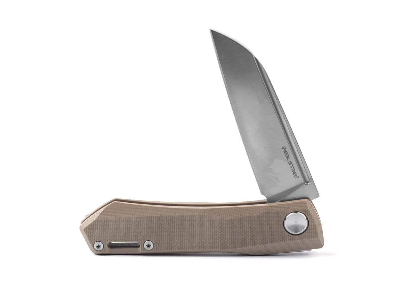 Der leichtfüßige Slipjoint Folder fällt besonders durch sein markantes Industriedesign mit klaren Linien auf. Die satinierte Sheepfoot Klinge aus hohfestem D2 wird per Nagelhau geöffnet und verriegelt nicht. Der kantige Griff aus sandbraunem G10 verspricht eine ausgesprochen gute Handlage und ist mit einer Fangriemenöse als auch einem Clip versehen (Tip-up/r).