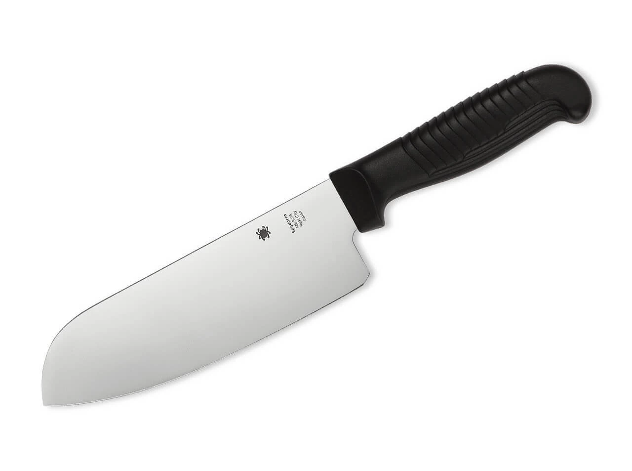 Santoku mit einer breiten Klinge aus MBS-26 und einen angenehm strukturierten Griff aus Polypropylen.