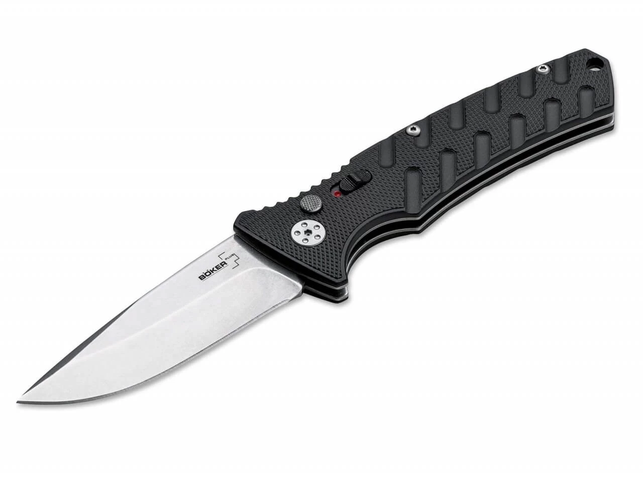 Das Böker Plus Strike rundet als robustes Springmesser für den Alltag oder Einsatz unser breites Programm an Automatikmessern ab. Der schlanke, ergonomisch geformte Griff baut auf soliden Stahlplatinen auf, die mit griffig gefrästen und leichtgewichtigen Schalen aus Aluminium bestückt sind. Das vergleichsweise weiche und zähe Metall weist gleichzeitig eine hohe Festigkeit auf und ist sehr belastbar. Tiefe Rillen in der ausgeprägten Daumenmulde unterstützen zudem die sichere Handlage. Dank der sauber rastenden Schiebesicherung kann das geschlossene Messer zusätzlich verriegelt und ein versehentliches Auslösen verhindert werden. Durch das Betätigen des Knopfes wird die Klinge freigegeben, durch die Spannung der dahinterliegenden Feder klappt sie dann selbstständig auf. Die Droppoint-Klinge wird aus dem in Japan entwickeltem AUS-8 gefertigt und ist mit einem Stonewash-Finish versehen. Auf der Rückseite befindet sich ein umsetzbarer Clip (Tip-up/Tip-down). Mit hochwertigem Nylon-Etui zur Aufbewahrung.
