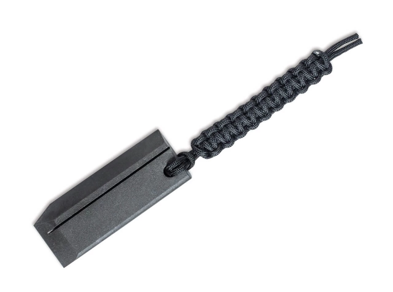 Der Tactical Sharpening Stone besteht aus Hard Black Arkansas und zeichnet sich durch seine Vielseitigkeit aus. Die angeschrägten Seiten, die Rille für Angelhaken etc. und der Lanyard für einen guten Griff machen den Schleifstein zu einem Alleskönner für unterwegs. Seine Maße betragen 101 mm x 38 mm x 9,5 mm. Lieferung inkl. Schärföl.
