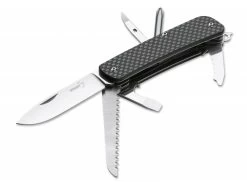 Der große Erfolg unserer Böker Plus Tech Tools zeigt sich unter anderem in den vielen Wünschen nach weiteren Varianten, die von unseren Kunden an uns herangetragen werden. Die Kombination aus unserem Know-how, der Verwendung von hochwertigen Materialien wie Sandvik 12C27 als Klingenstahl (Härte 58-60 HRC), Edelstahlplatinen und der verschraubten Konstruktion heben unsere Böker Plus Tech Tools ebenso vom herkömmlichen Taschenmesser ab wie der integrierte Glasbrecher und die ausklappbare Fangriemenöse, über die die meisten Modelle verfügen. Die Carbon Fiber Edition besitzt eine exklusive Beschalung aus einem laminierten Material-Mix aus unverwüstlichem G10 als Basis, mit einer Oberfläche aus polierter Kohlefaser, das im Zusammenspiel mit den polierten Klingen eine besonders edle Anmutung erzeugt. So bietet die Edelversion nicht nur uneingeschränkte Vielseitigkeit und edle Materialien, sondern lässt auch die Sammlerherzen höherschlagen.