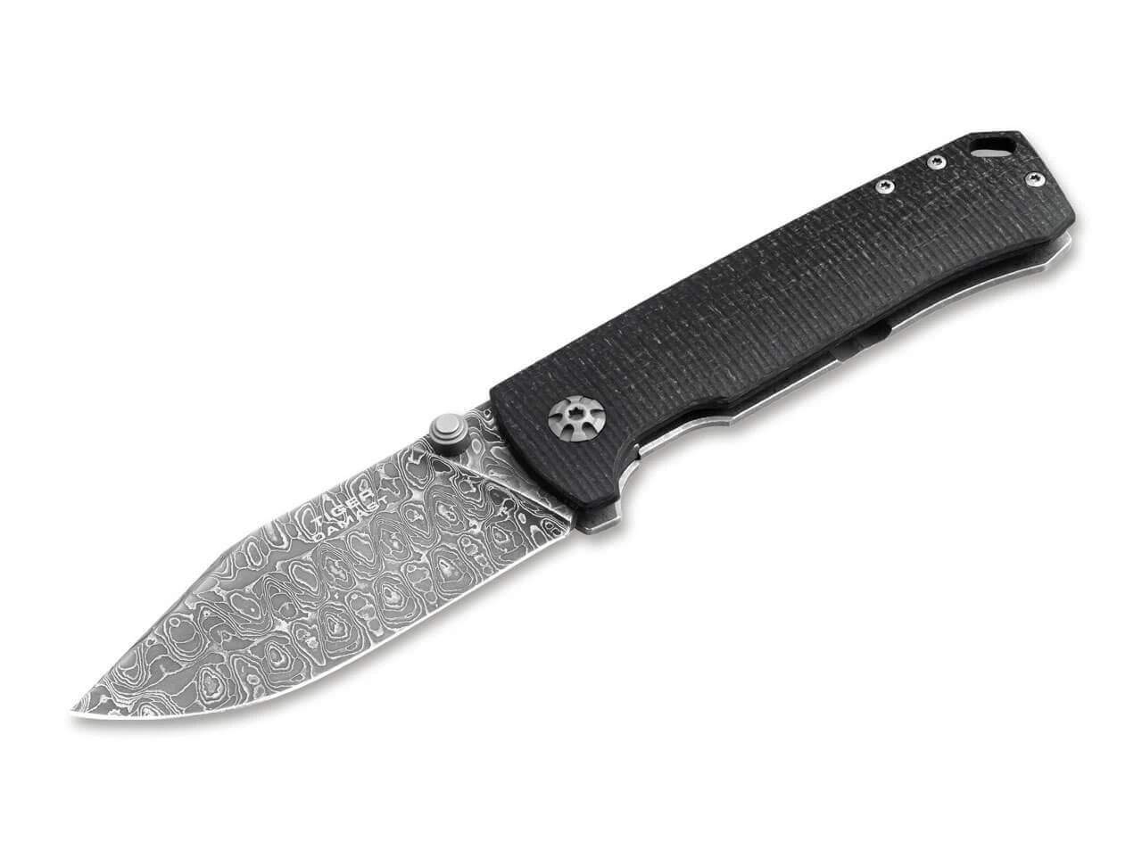 Die kugelgelagerte Klinge wird per Daumenpin geöffnet und von einem stabilen Stahl–Framelock mit Stonewash-Finish arretiert, ein Hinderer Lock-Stop fungiert als Überdehnschutz für die Verriegelung. Die Gesamtform des Messers ist eine Hommage an die berühmte Linienführung des Panzers, während die dekorative Klingenachsschraube dem Hauptantriebskettenrad nachempfunden ist. Die leicht konturierte Griffschale aus Jute Micarta ist mit präzise gefrästen Rillen versehen und erinnert so an die charakteristische Oberflächenstruktur der Zimmerit-Beschichtung deutscher Panzerfahrzeuge. Mit Fangriemenöse und gefrästem Clip (Tip-up/r) mit Stahlkugel. Handgefertigt in der Böker Messer-Manufaktur Solingen. Auslieferung mit edlem Schwebedisplay, Echtheitszertifikat und individueller Seriennummer.