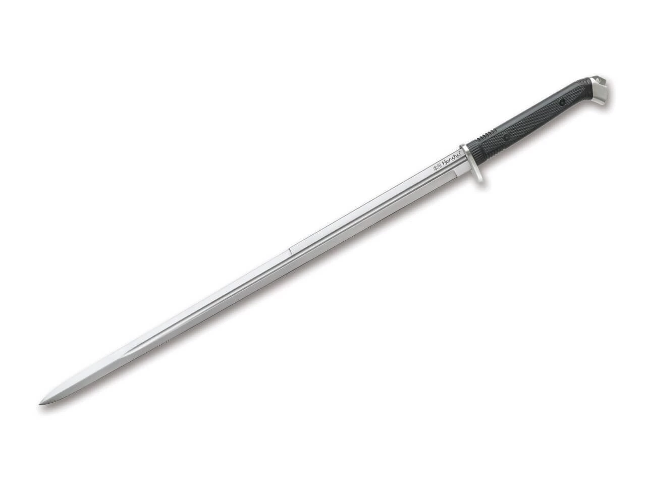 Das Funktionsschwert Honshu Boshin Double Edge Ninja von United Cutlery kombiniert traditionelle japanische Elemente mit Eigenschaften europäischer Schwerter und Degen. Die schlanke, geradlinige und beidseitig geschliffene Klinge aus schockelastischem 1060 Kohlenstoffstahl (nicht rostfrei) ist mit einer breiten, zentrierten Hohlkehle versehen. Die durchgehende Angel ist mit einem konturierten Griff aus strukturiertem TPR-Hartgummi verschraubt. Den krönenden Abschluss bildet ein massiver polierter Stahlknauf. Inklusive traditionell gestalteter Scheide mit Wicklung.