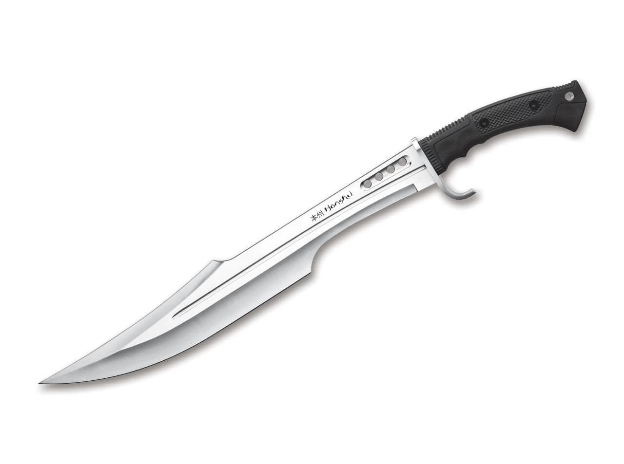 Die gelungene Kombination aus der klassisch-spartanischen Schwertform und den modernen Elementen der Honshu-Serie beschert uns dieses atemberaubende Funktionsschwert von United Cutlery. Die DurchbrĂŒche in der spektakulĂ€r geschwungenen Klinge, die stabilitĂ€tsfördernde Sicke und der Griff aus strukturiertem TPR ergeben ein modernes Schwert, das in jeder Sammlung eine Sonderstellung einnimmt. Mit Edelstahl-Parierelement. Auslieferung mit passgenauer Lederscheide.