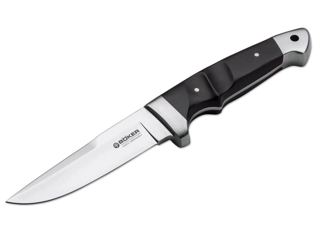 Seit vielen Jahren ist das Böker Vollintegral ein nicht mehr wegzudenkender Bestandteil unseres Sortiments, und gleichzeitig eine Ikone unter den Böker- Jagdmessern. Die stabile Bauweise des aus einem Stück Stahl gesenkgeschmiedeten Messers und die ausgezeichnete Ergonomie der durchdacht gestalteten Griffschalen haben schon Legionen von Jägern begeistert. Nun haben wir das Vollintegral in einigen Punkten weiter optimiert. So sind der Griff insgesamt sowie die Oberflächen an Parierelement und Knauf stärker gerundet, um einerseits die Handlage zu optimieren, und andererseits die Optik noch eleganter zu gestalten. Des weiteren werden die Griffschalen zur Minimierung von Fertigungstoleranzen präzisionsgefräst, um die Passgenauigkeit und die Ergonomie auf das höchstmögliche Niveau zu heben. Der Klingenschliff wird vom bisherigen Hohlschliff zur Steigerung der Stabilität auf einen Flachschliff umgestellt. Als Klingenstahl kommt nach wie vor der bewährte 440C zum Einsatz. Lieferung mit Lederscheide. Mit Beschalung aus edlem zertifiziert importiertem Grenadillholz.