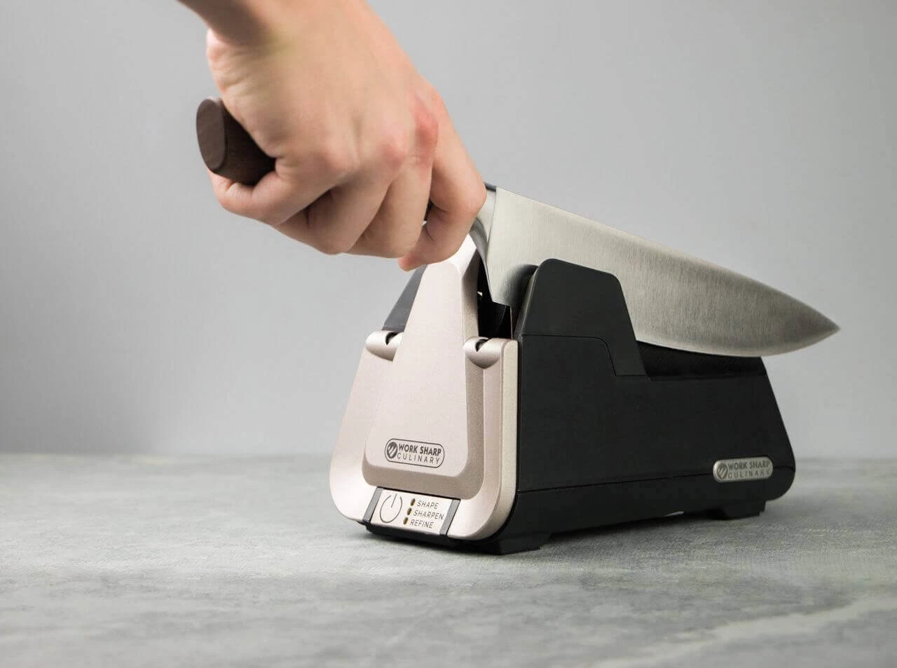 Der Work Sharp Culinary E5 hebt das Schärfen von Küchenmessern auf ein neues Level. Die extrem einfache Handhabung wird nicht nur durch die Winkelführungen des Geräts gewährleistet, sondern auch durch die timergesteuerten Schärfintervalle sowie die unterschiedlichen Geschwindigkeiten der integrierten Schleifbänder. Zudem sorgt die automatische und komplett wartungsfreie eingebaute Schleifstaubabsaugung und das leise Arbeitsgeräusch für ein sauberes und ruhiges Arbeiten, so dass der Küchentresen nicht zur Werkbank mutiert.